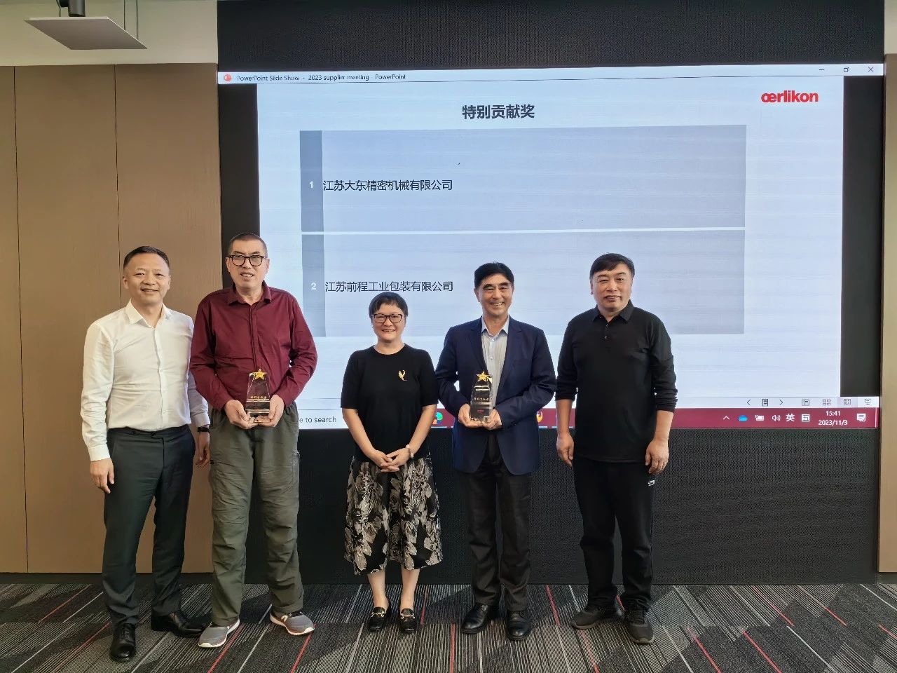 2023年11月3日,在ORK 2023供應商會議上,客戶對前程包裝公司多年來提供高質量的產品和卓越的服務支持,尤其在去年疫情期間,攻堅克難,鼎力相助,持續保障木包裝箱的及時供應充分肯定,給予頒發“特別貢獻獎”。前程包裝董事長徐平先生出席會議并代表領獎。